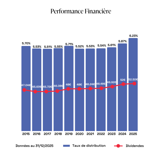 Avertissements sur les risques : les performances passées ne sauraient préjuger des performances futures. L’investissement en SCPI comporte un risque de perte en capital et de liquidité, le capital investi n’étant pas garanti. Les éventuels dividendes peuvent varier à la hausse ou à la baisse. La SCPI ne garantit pas la revente des parts.